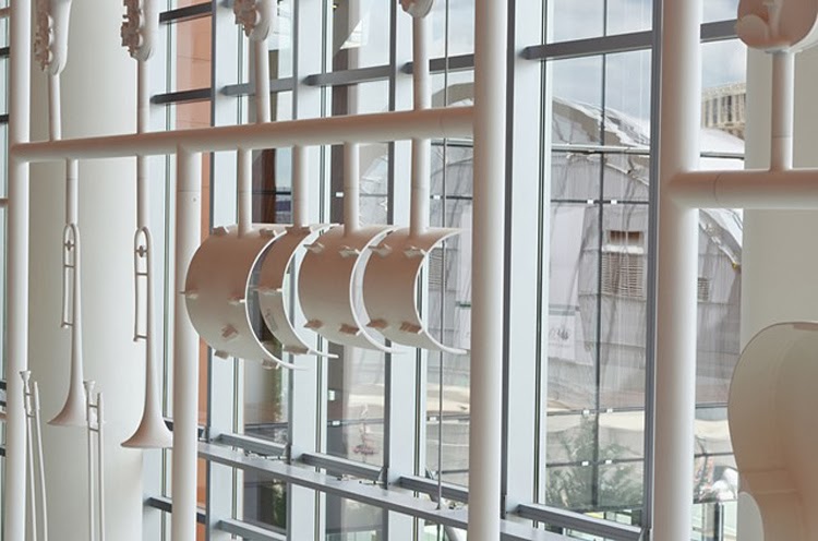 architecture. Love the contrast between the industrial look and the vivid musical instruments. Via Lustik.